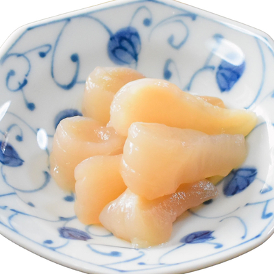 愛媛・宇和海で育った真珠貝の貝柱を厳選使用。独特の上品な風味と歯ごたえが、他の魚介では味わえない特別な味わいをもたらします。