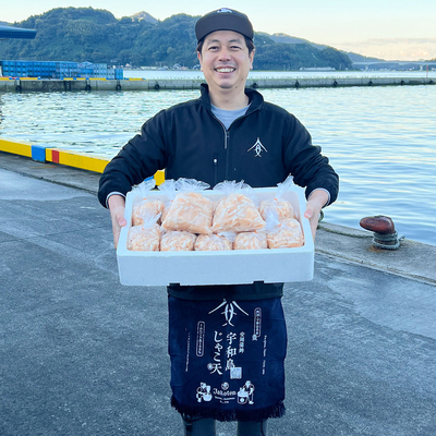 宇和島産の真珠貝の貝柱と、愛媛産エソのすり身を使用。一口サイズで食べやすく、香りと余韻を楽しめます。